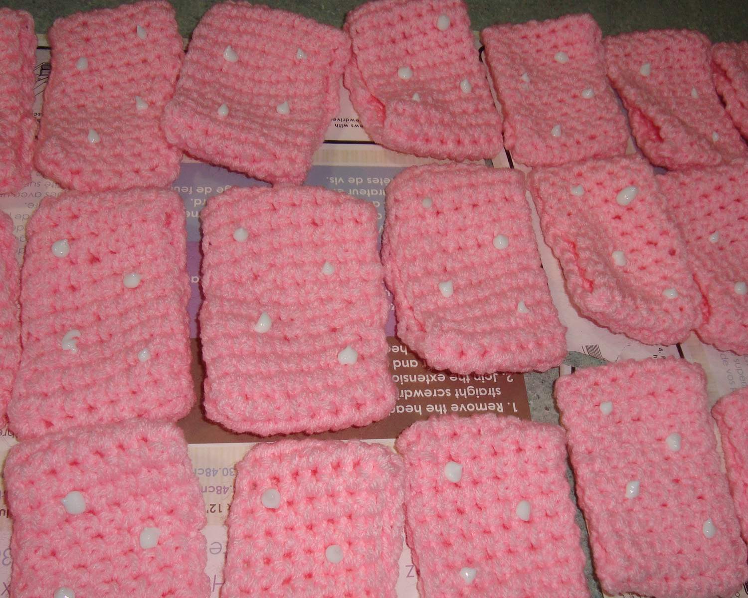 In a couple weeks I will be catering a breakfast for a friends workplace. The theme I am working with is snowflakes, pink and red. I made these coffee sleeves for each of the ladies. The white dots are fabric paint which when dry should lend an anti-slip effect. Very important since I bought 16 oz. cups!